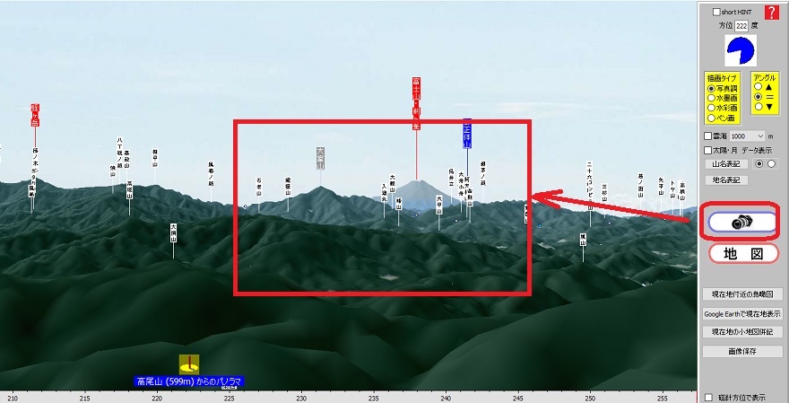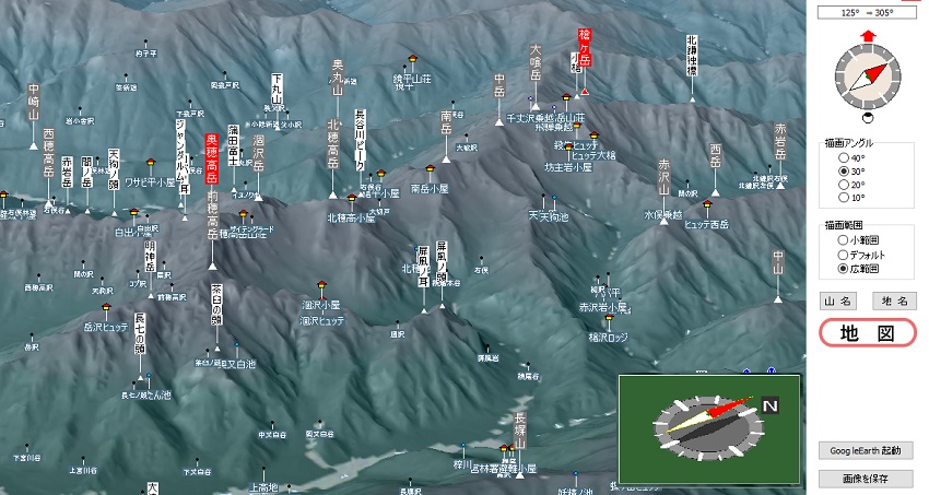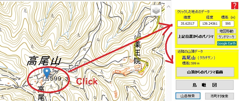 1.地図をクリックしてその場所の鳥瞰図を表示 (地図をクリック ⇒ 鳥瞰図ボタン) ![]() |