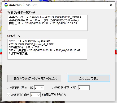 GPSデータと写真の撮影日時から撮影位置を割り出します。 |