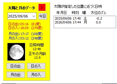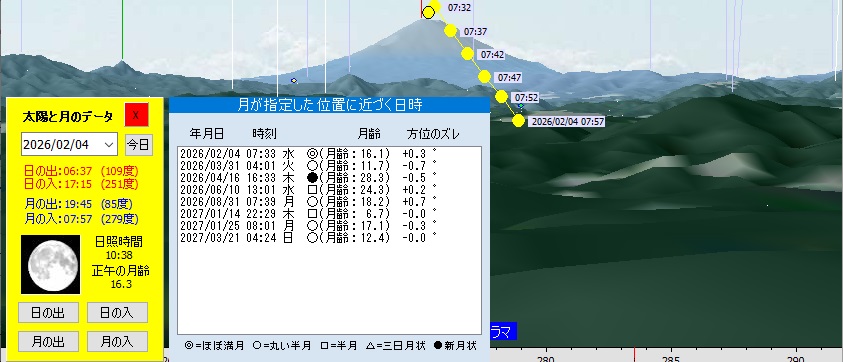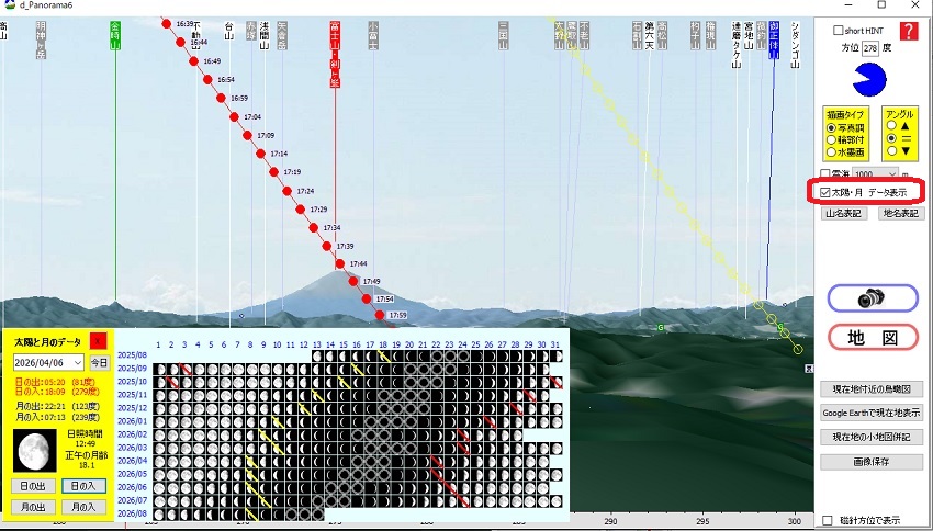 パノラマ画面に太陽、月の位置を表示 => ダイヤモンド富士 / 全国のダイヤモンド〇〇 |